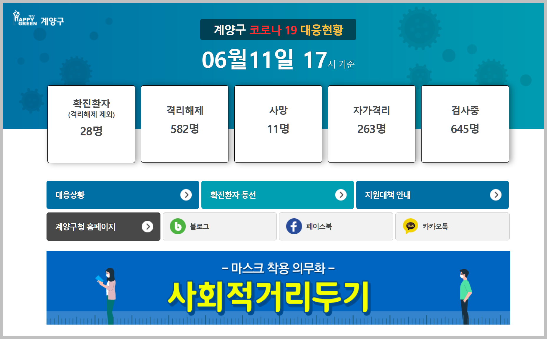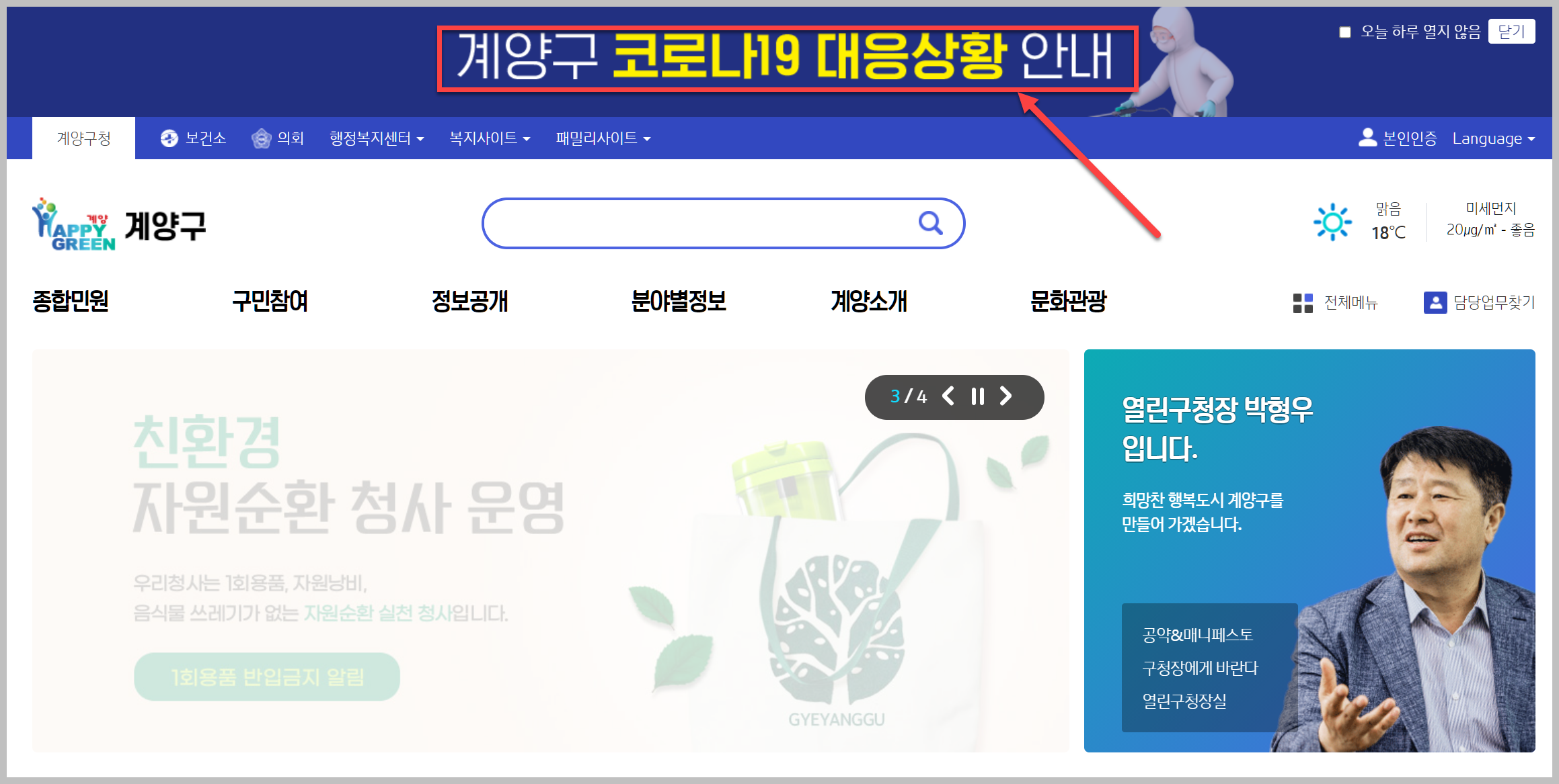 계양구청 홈페이지에서 코로나19 정보 얻기