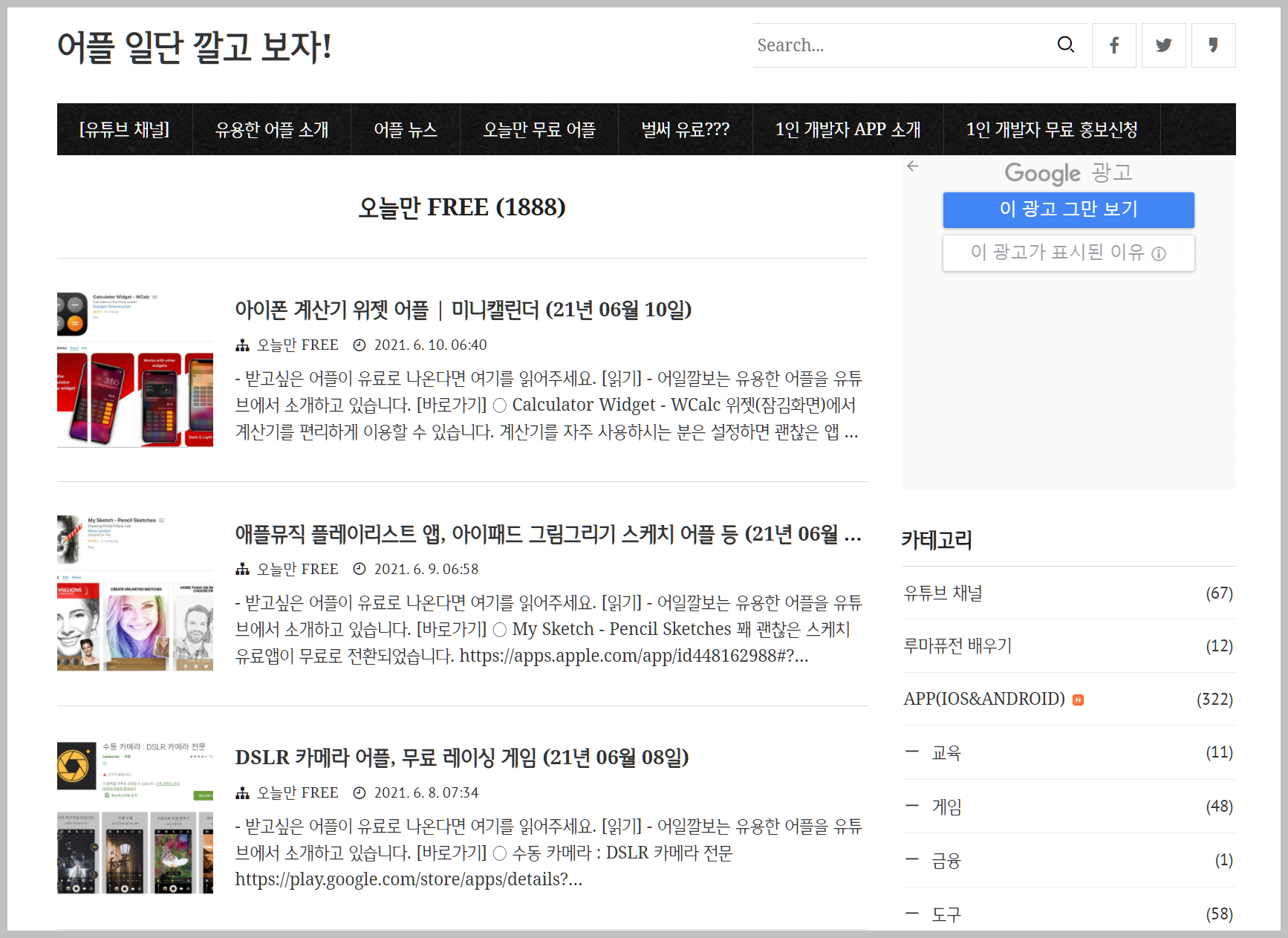 아이러브앱 이라는 티스토리 블로거가 있는데, 이 사이트에는 무료 어플과 관련된 다양한 정보들이 계속 올라옵니다. 그리고 쓸대없는 어플이 하나도 없고 정말 쓸만한 어플만 계속적으로 제공을 해주고 있습니다. 어떻게 이런 정보를 얻는지 개인적으로는 진짜 궁굼하더라구요.