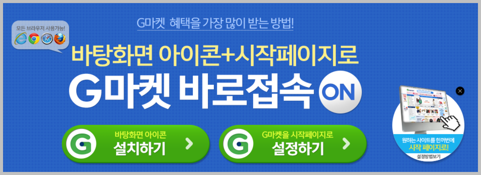 이렇게 네가지 방법이 있습니다. 이 중에서 가장 확실한 방법은 지마켓 바로가기 설치 방법입니다.